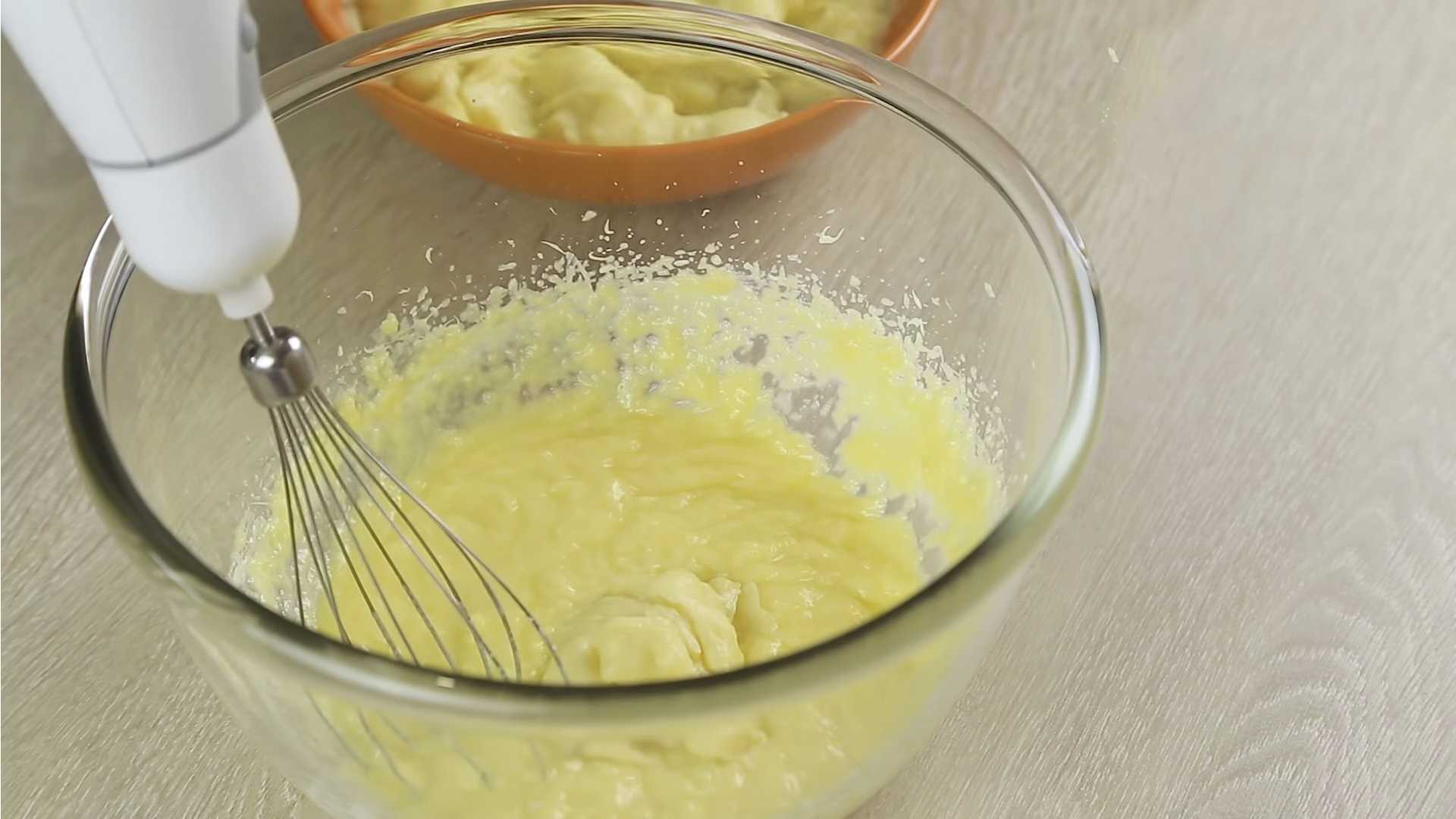 Остывшую заварную основу добавляем к маслу небольшими порциями. Каждый раз взбиваем массу до однородности.