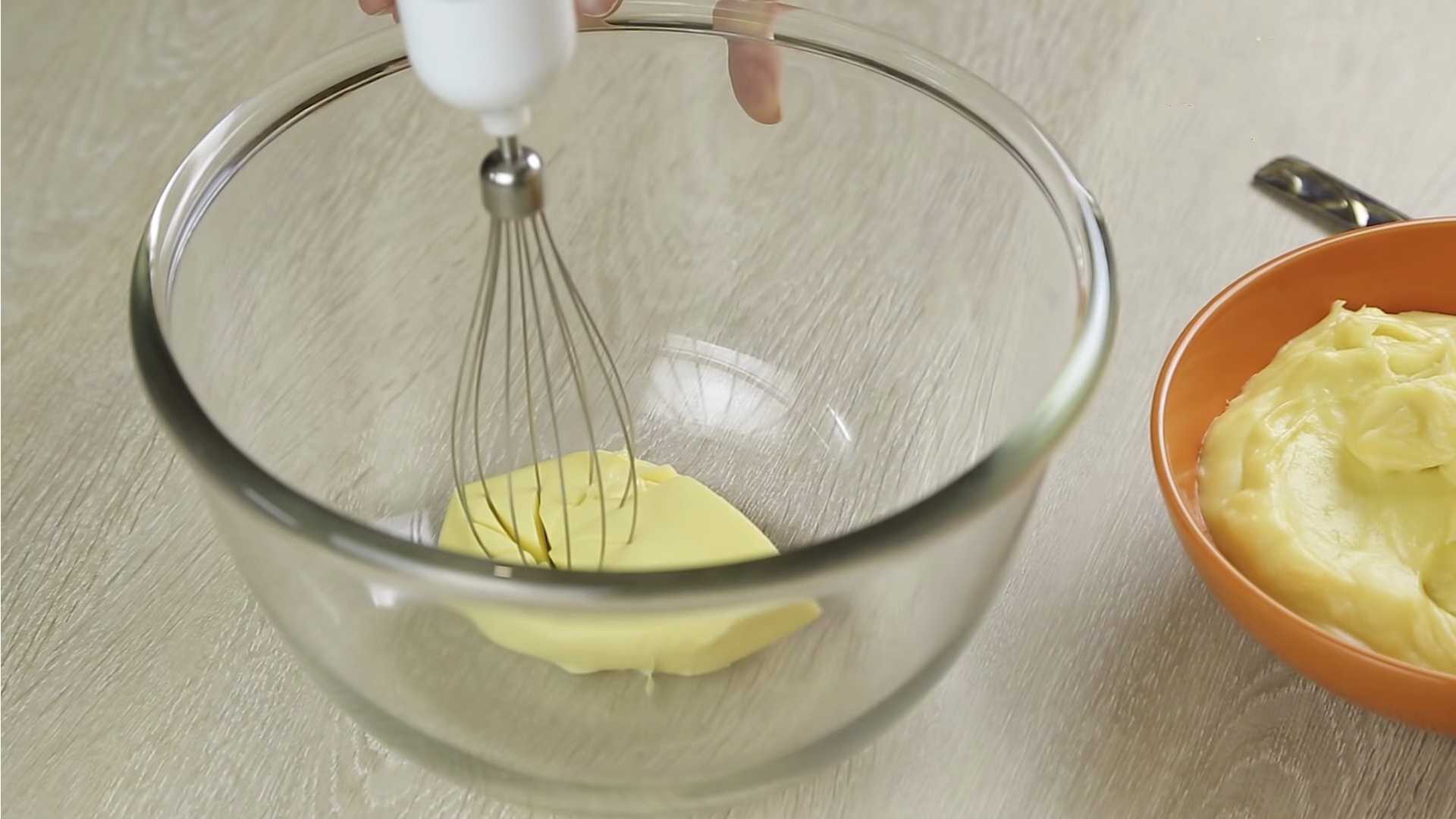 - Остывший крем тоже нужно взбить миксером, он не увеличится в объеме, просто станет нежнее, а возможные комочки, растворятся.