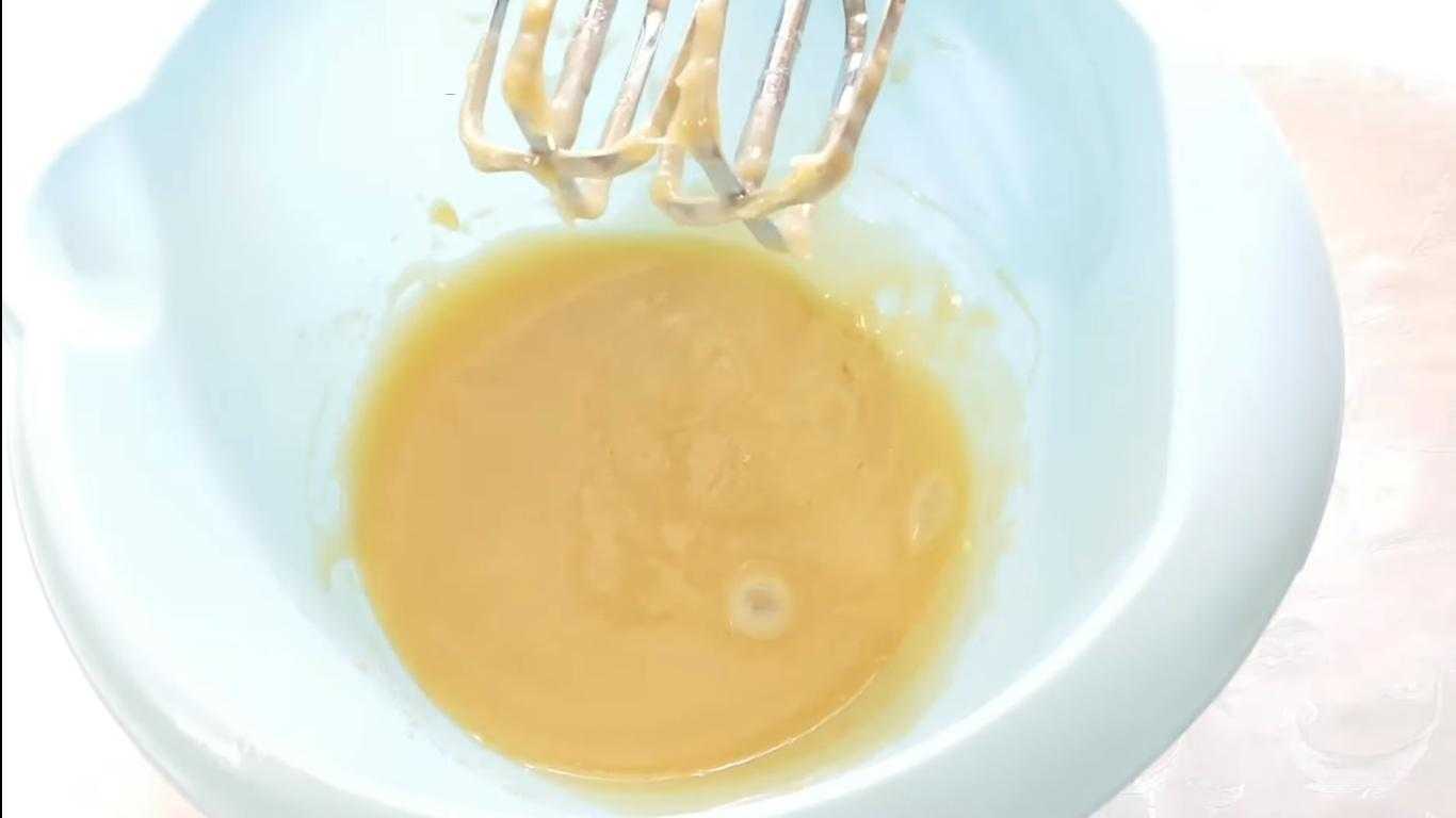 - Все ингредиенты равномерно перемешать и слегка взбить при помощи венчика до полного растворения сахарных крупинок.