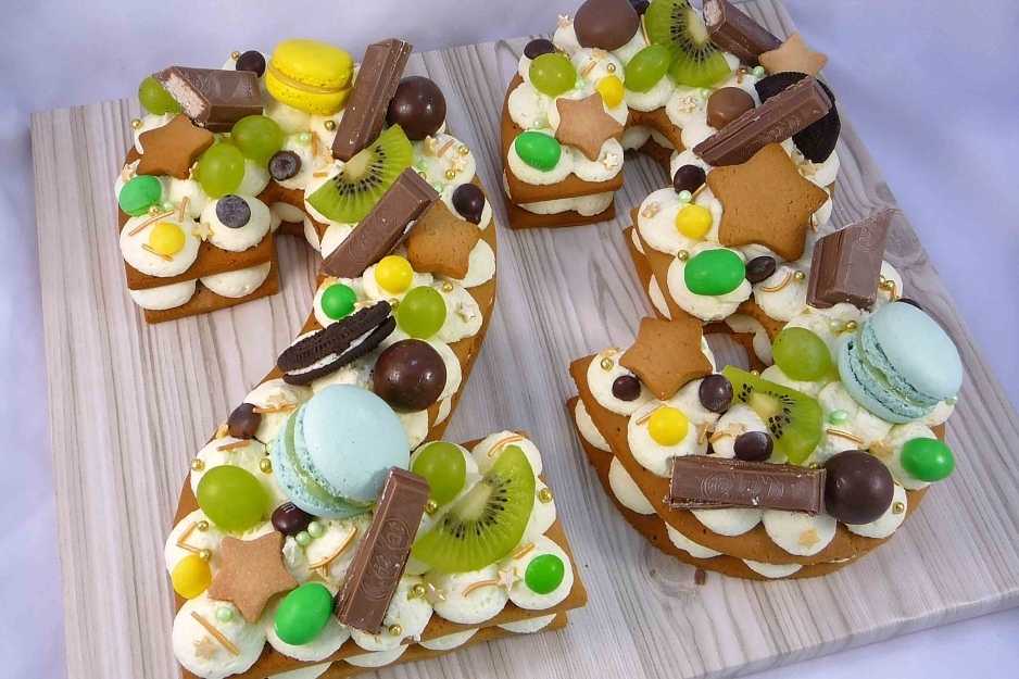 - Перемазываем кремом или обматываем пищевой пленкой. Торт из медовых коржей в виде цифры собирают за сутки до дегустации.