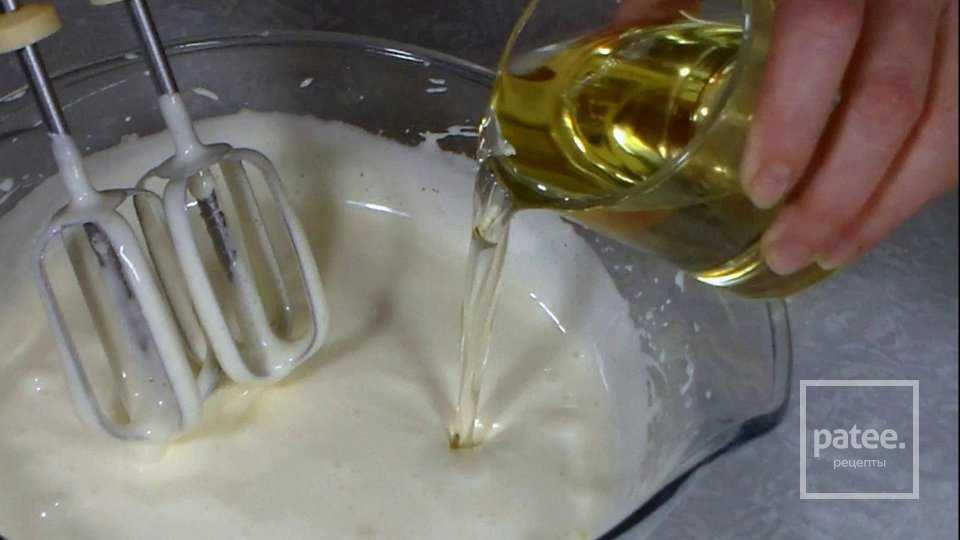 - Замесить бисквитное тесто, соединяя ингредиенты в такой последовательности, как в классическом рецепте этого десерта.