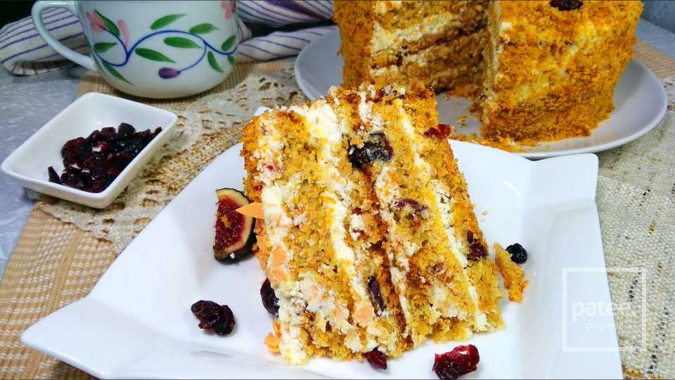 Морковный торт с начинкой из карамелизированных груш с апельсином