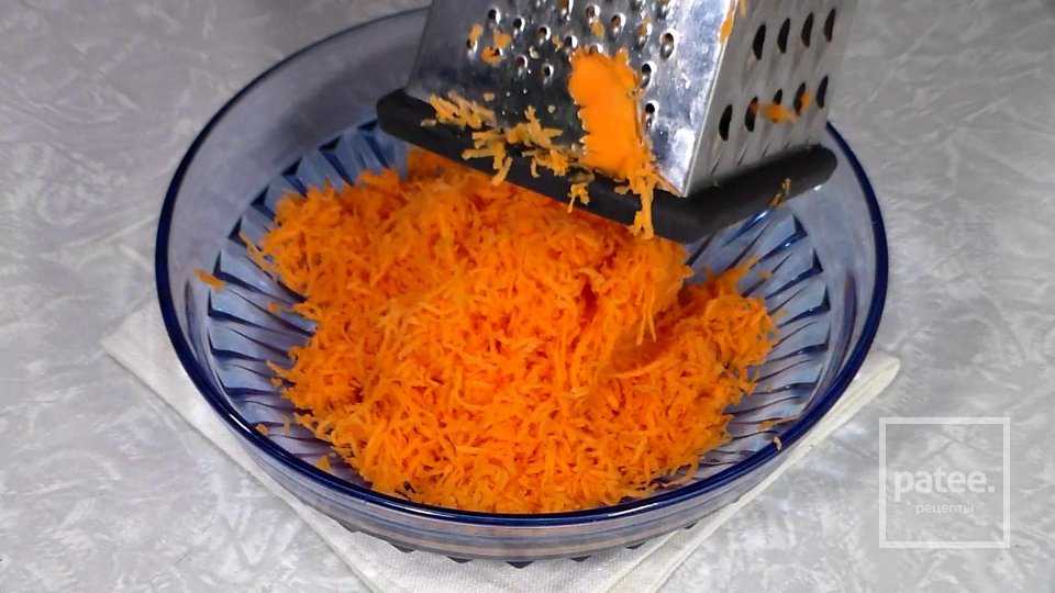 1. Морковь моем и очищаем. Вес дан в очищенном виде. Натираем ее на мелкой терке.