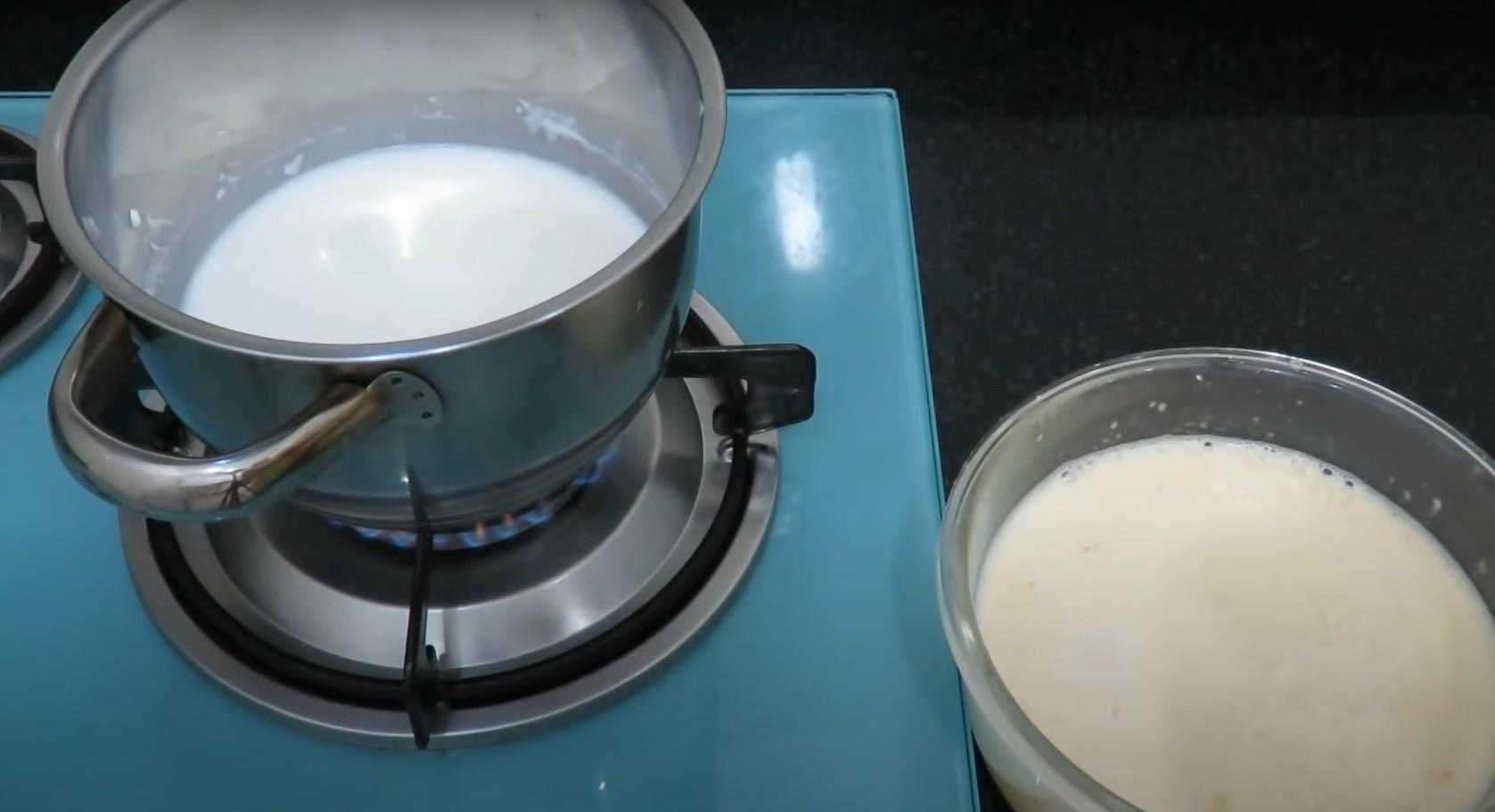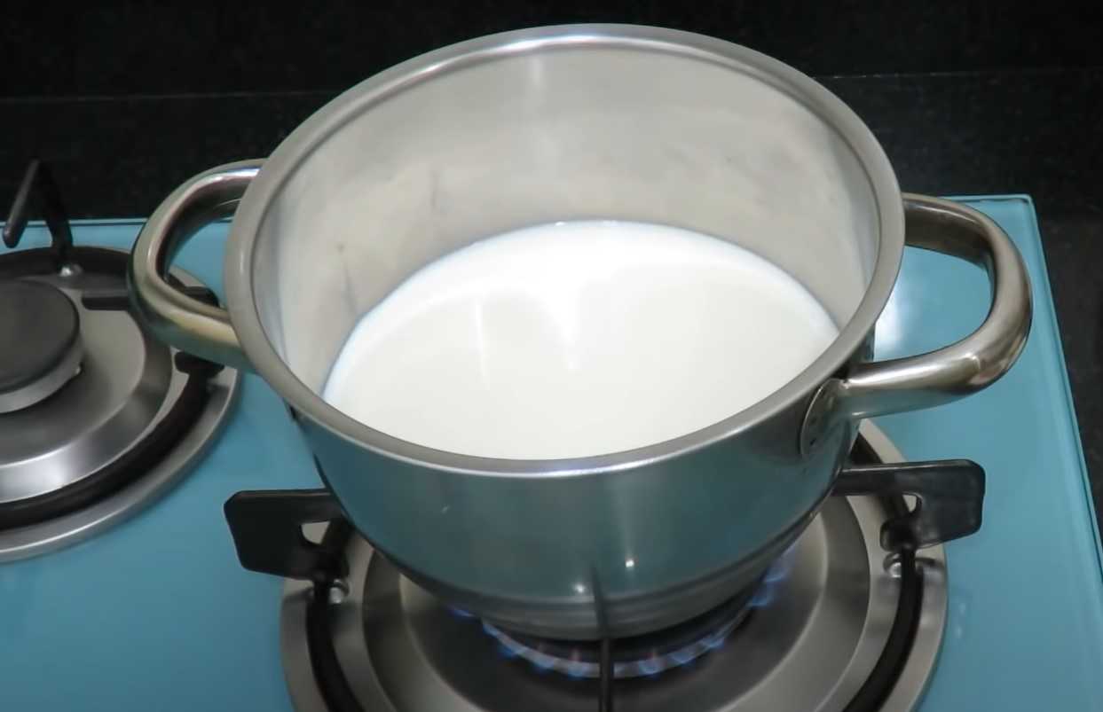 Готовом заварную составляющую. Для этого в сотейник выливаем молоко, доводим его до кипения.