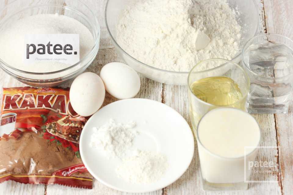 Ингредиенты для приготовления шоколадного бисквита на кипятке в мультиварке:
