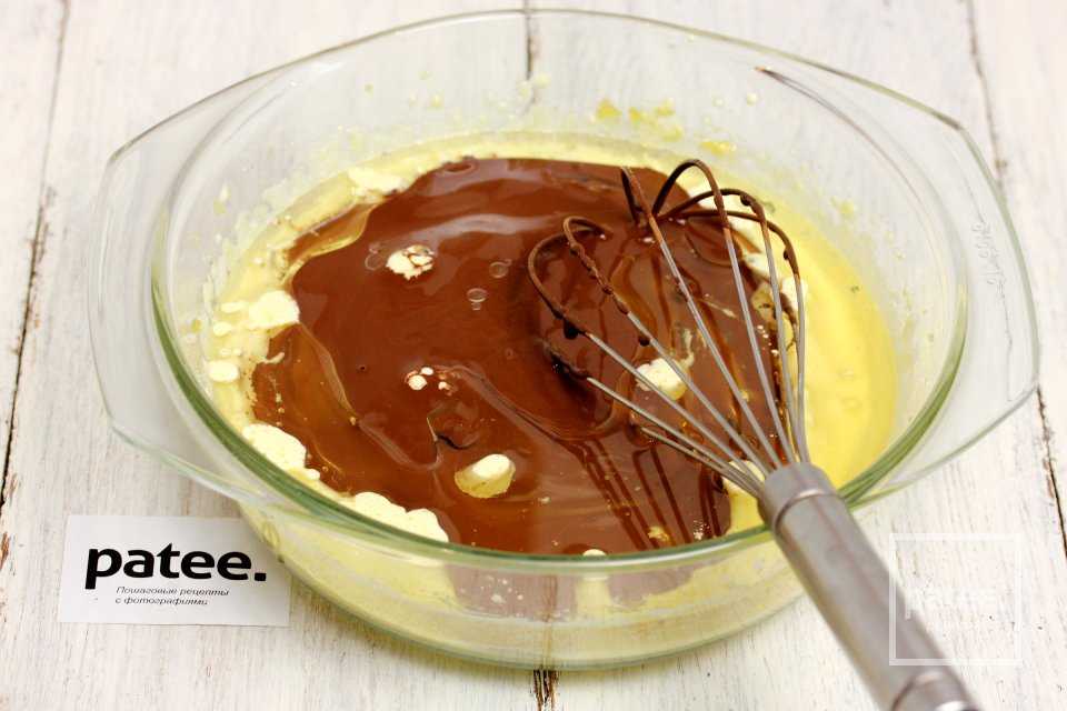 Вливаем в желтковую массу остывшую смесь какао и подсолнечное рафинированное масло.