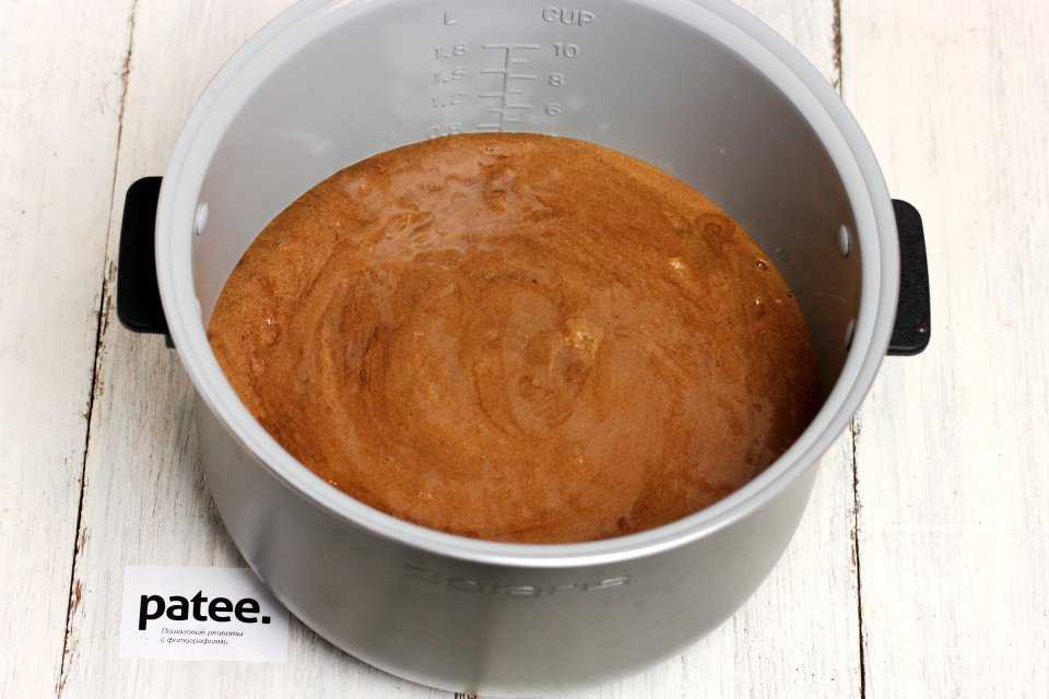 Смазываем чашу мультиварки и вливаем в нее тесто. Устанавливаем программу «Выпечка» на 1 час.