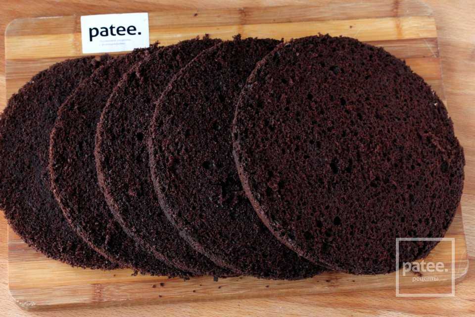 Вот так выглядит шоколадный шифоновый бисквит в разрезе- он пористый и дырчатый. Без проблем его удалось разрезать на 5 коржей.