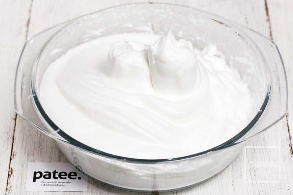 Чтобы проверить, достаточно ли взбиты белки, зачерпните их ложкой и переверните. Если масса осталась в ложке, можно прекратить взбивание.