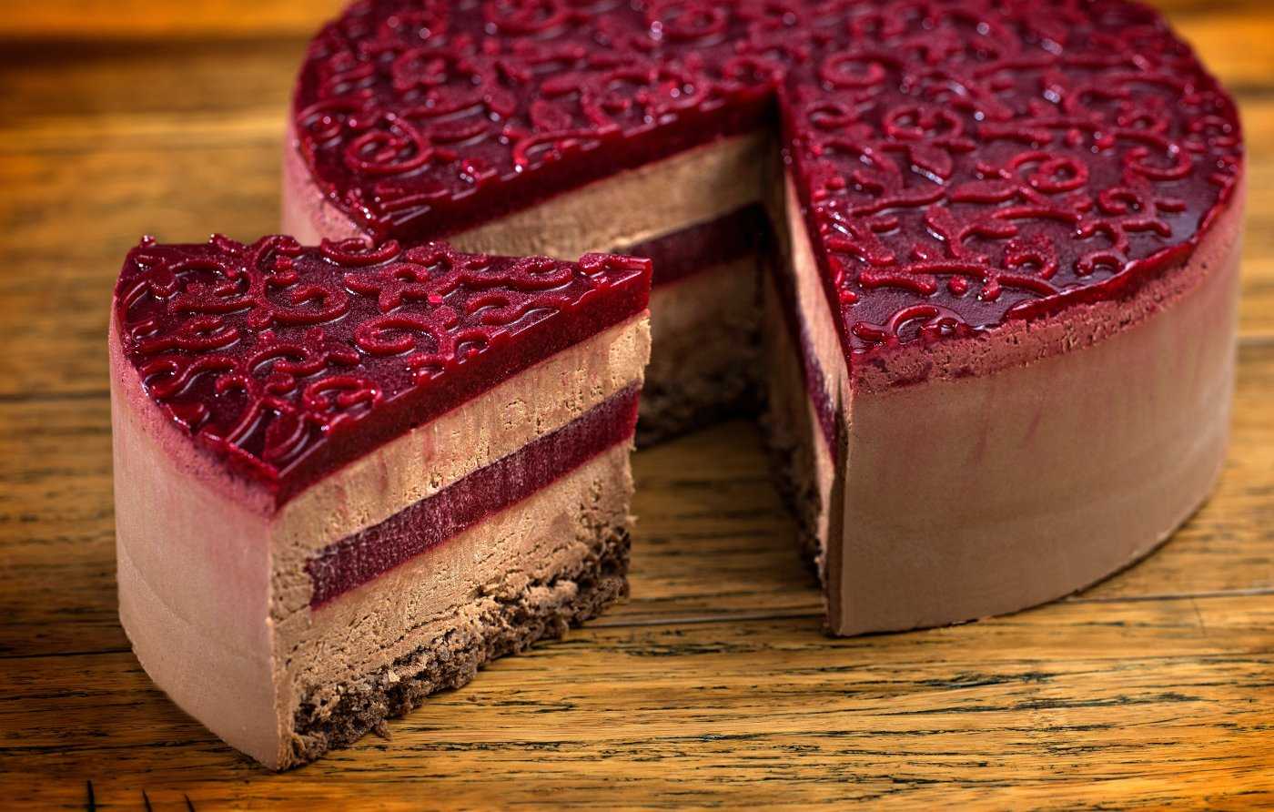 - Слои чередуют так: тесто, вишни, шоколадный мусс. Застывает лакомство 3 ч. (при низкой температуре).