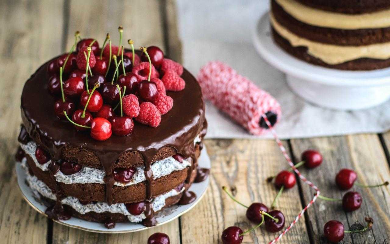 Торт по этому рецепту станет шикарным украшением праздничного стола. Сладость бисквитных коржей отлично сочетается с кисловатым кремом из вишни. Выбор ягод зависит от сезона, единственное условие – они должны быть без костей.