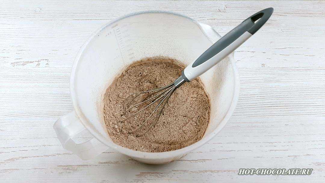 - Для начала нужно выбрать глубокую посудину, в которую нужно будет поместить все сухие ингредиенты.