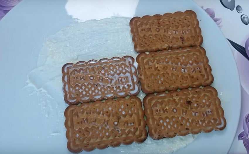 Если же сиропа или сока нет, а алкоголь не приемлем, потому что вы готовите творожный торт для детей, можно окунать печенье в жидкую сметану.