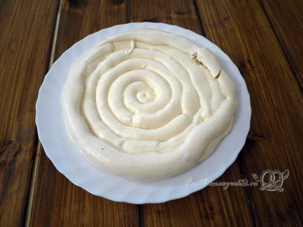 Чтобы он получился, необходимо тщательно взбить белки до нужной консистенции, а затем выпекать, не открывая духовку (желательно, чтобы меренга в ней и остыла). Покрывать корж кремом следует непосредственно перед подачей к столу, иначе меренга впитает влагу и утратит свою воздушность, что существенно снизит вкусовые качества торта