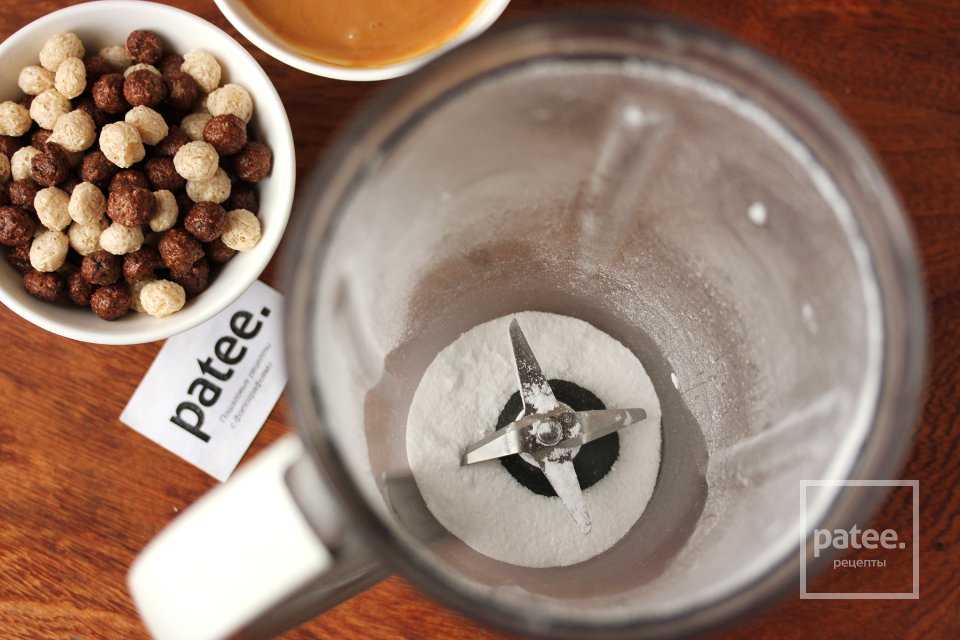 Измельчаем часть шариков сухого завтрака до получения неоднородной крошки.