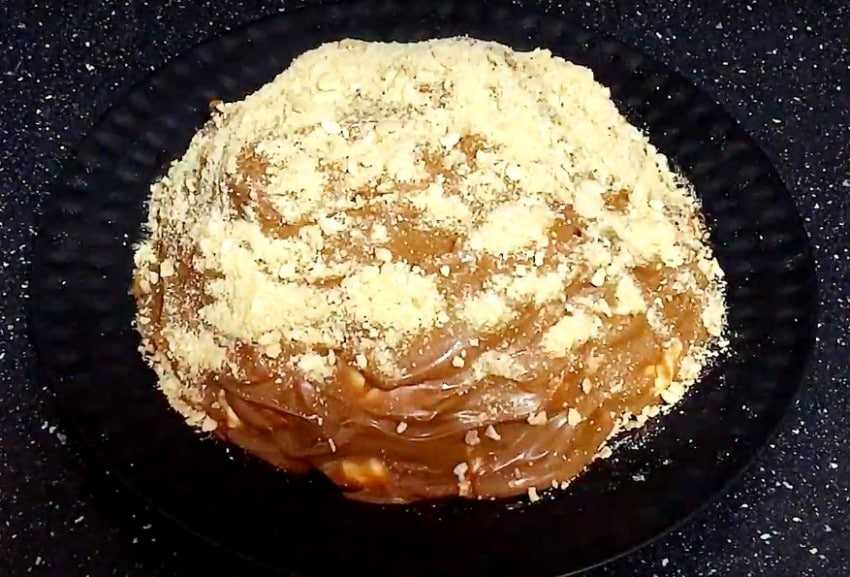 - Отправить на блюдо одну часть, промазать массой на основе орехов.