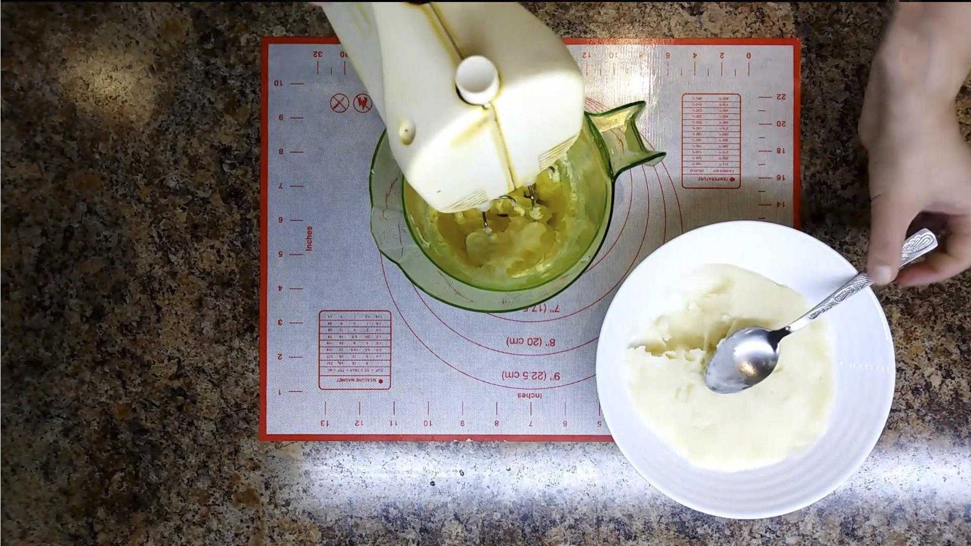 - Остужают заварную основу, взбивают с мягким сливочным маслом, помещают ненадолго в холодильник.