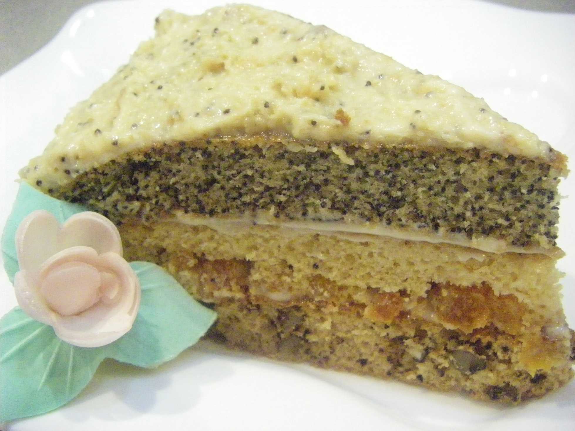 Сначала подготовим начинку для коржей. Курагу вымыть, обсушить и нарезать маленькими кубиками. Грецкие орехи нарезать, поломать или прокатать скалкой, кому как удобнее, я люблю просто резать. Мак минут 20 поварить в воде, хорошо слить, можно отжать через марлю.