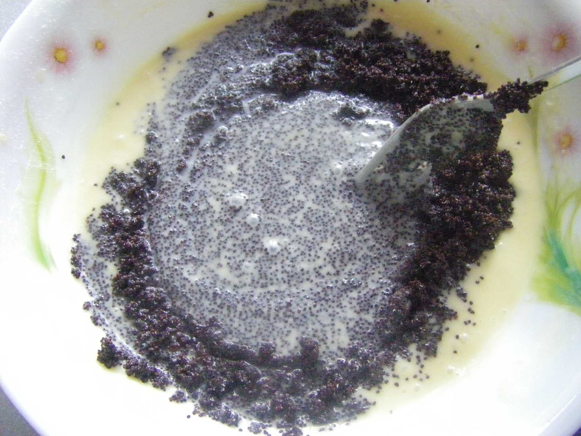 Добавляем 0,5 стакана мака и перемешиваем.
