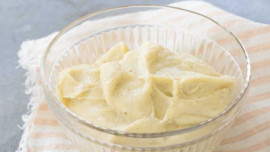 Такой крем подойдёт для тортов, пирожных, эклеров и даже подавать как десерт. Просто добавьте нарезанные фрукты и подайте лакомство в креманке.