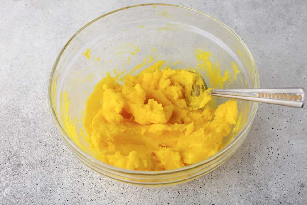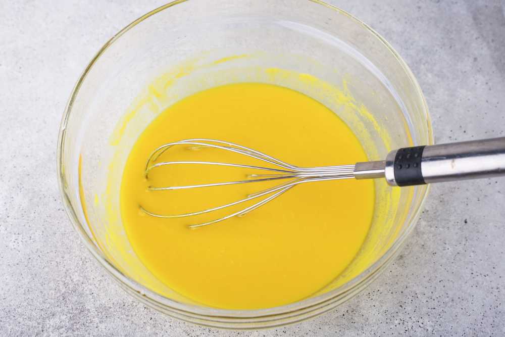 Разбейте яйцо и отделите желток от белка. Отдельно от них смешайте остальные ингредиенты. Белок добавляют последним, аккуратно распределяя его по всему тесту.