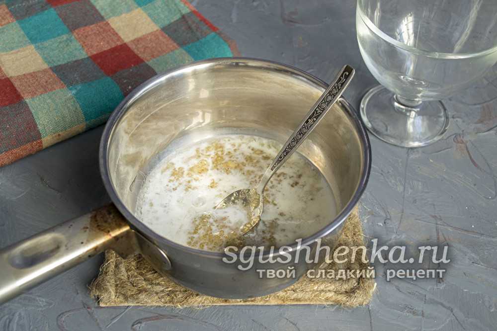 - В кастрюлю вылить молоко, добавить сахар, поставить на плиту. Нагревать до растворения сахара.