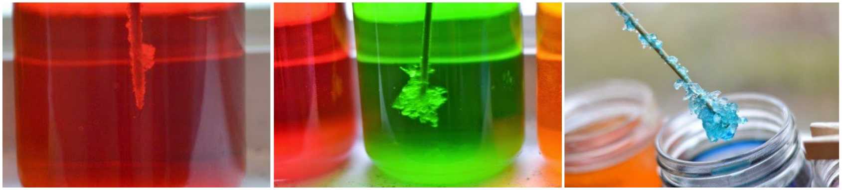 Сладкие леденцы кристаллы на палочке будут разрастаться с каждым днем. Когда лакомство достигнет желаемых размеров, его нужно достать, обсушить и можно угощать удивительным леденцом окружающих.