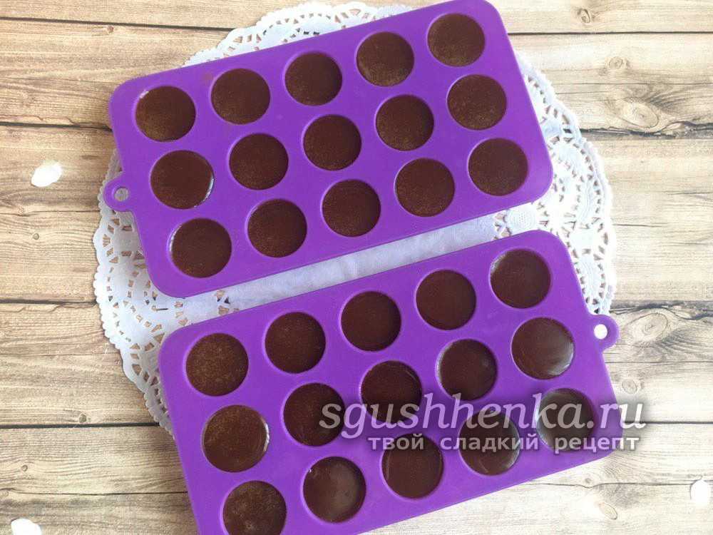 - Наполнить формочки с замороженным шоколадом полученной массой и отправить на 15 минут в холодильник (но не в морозильную камеру).