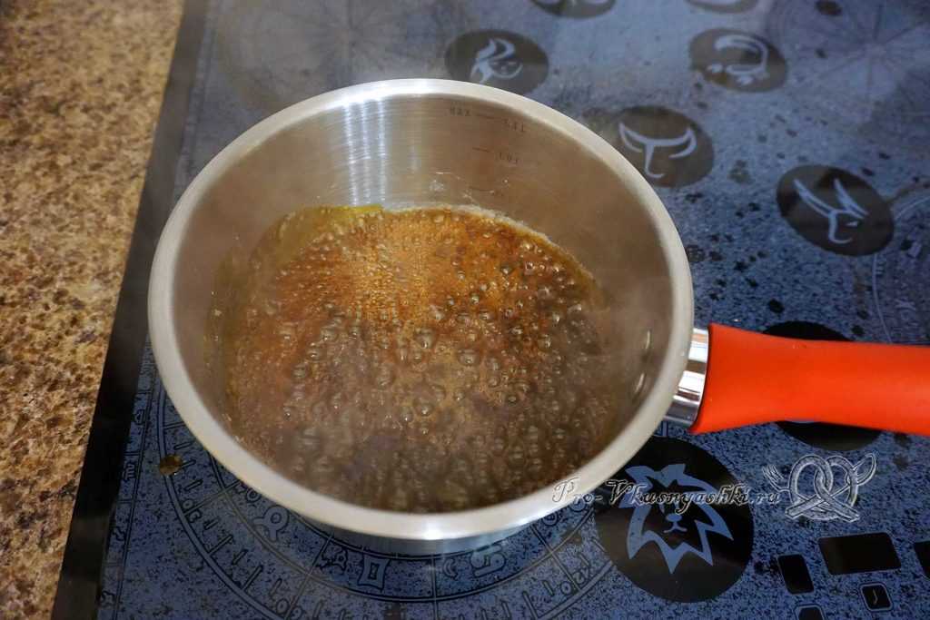 Через 7-8 мин сахар начнет плавиться и станет темнеть.