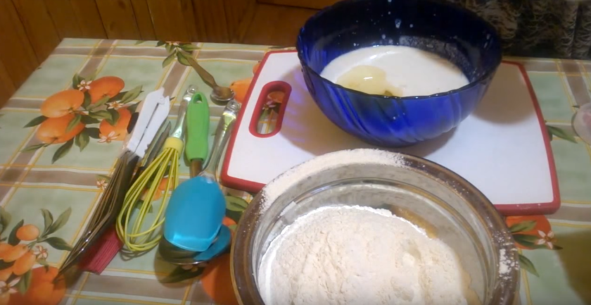 - Если замешиваете тесто на скисшем кефире, то заранее достаньте его из холодильника, чтобы он успел нагреться.