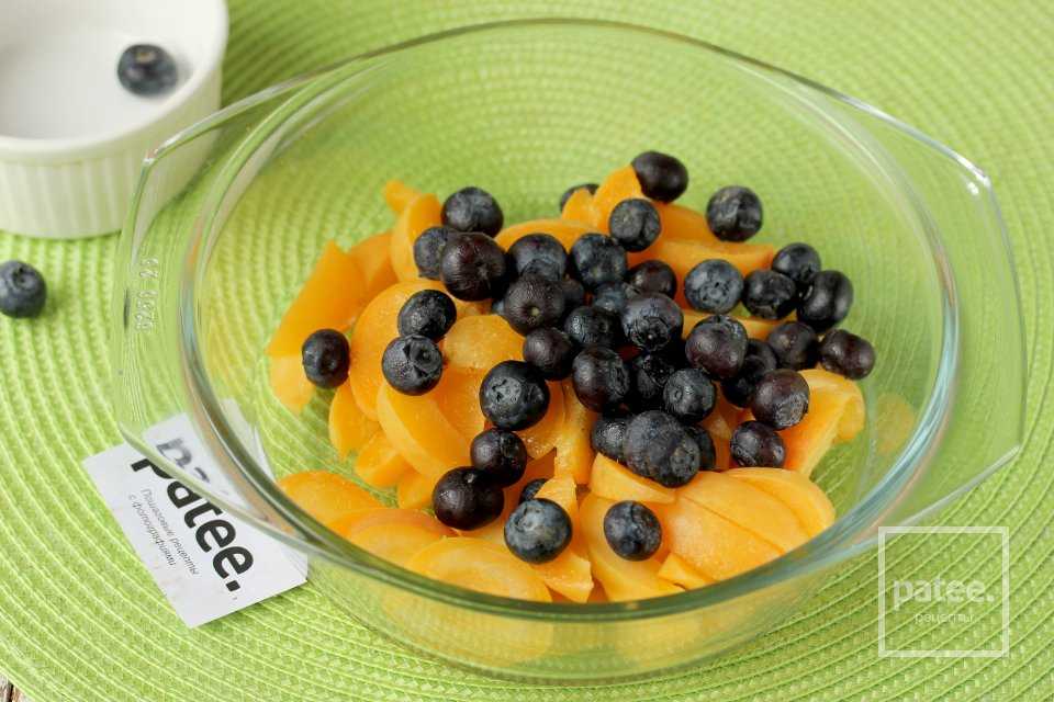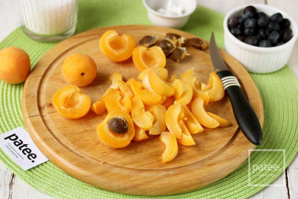Половинки абрикос выкладываем сверху, срезом вниз.