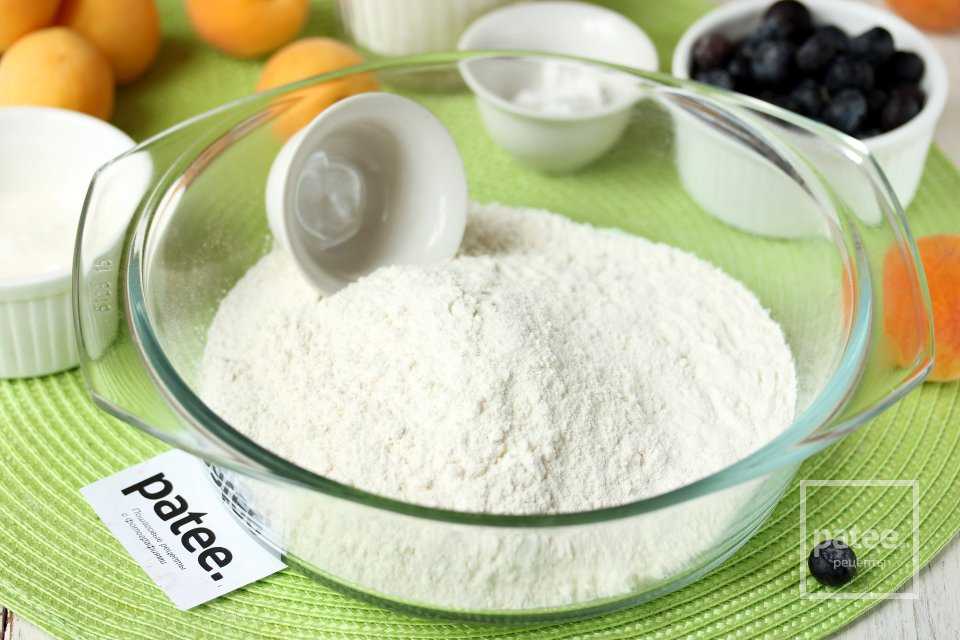 2. Просеянную муку смешать венчиком с разрыхлителем.