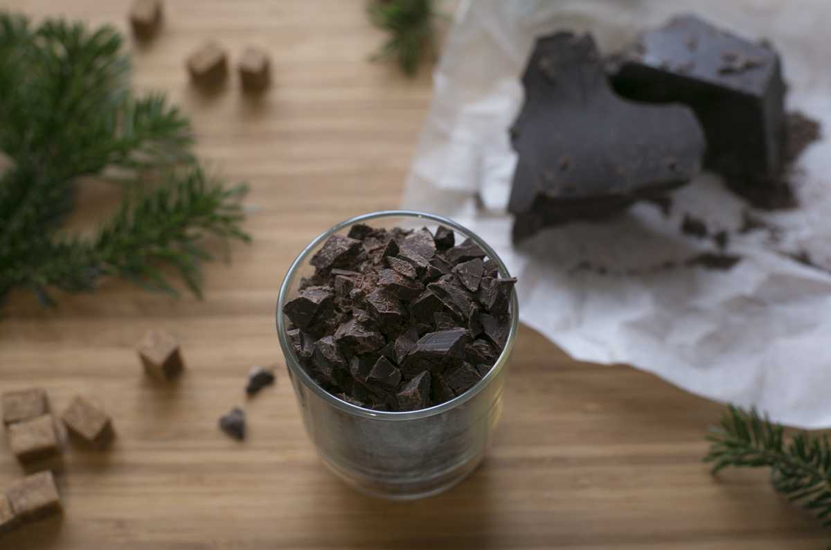 Отмеряю 160 г черной шоколадной крошки.