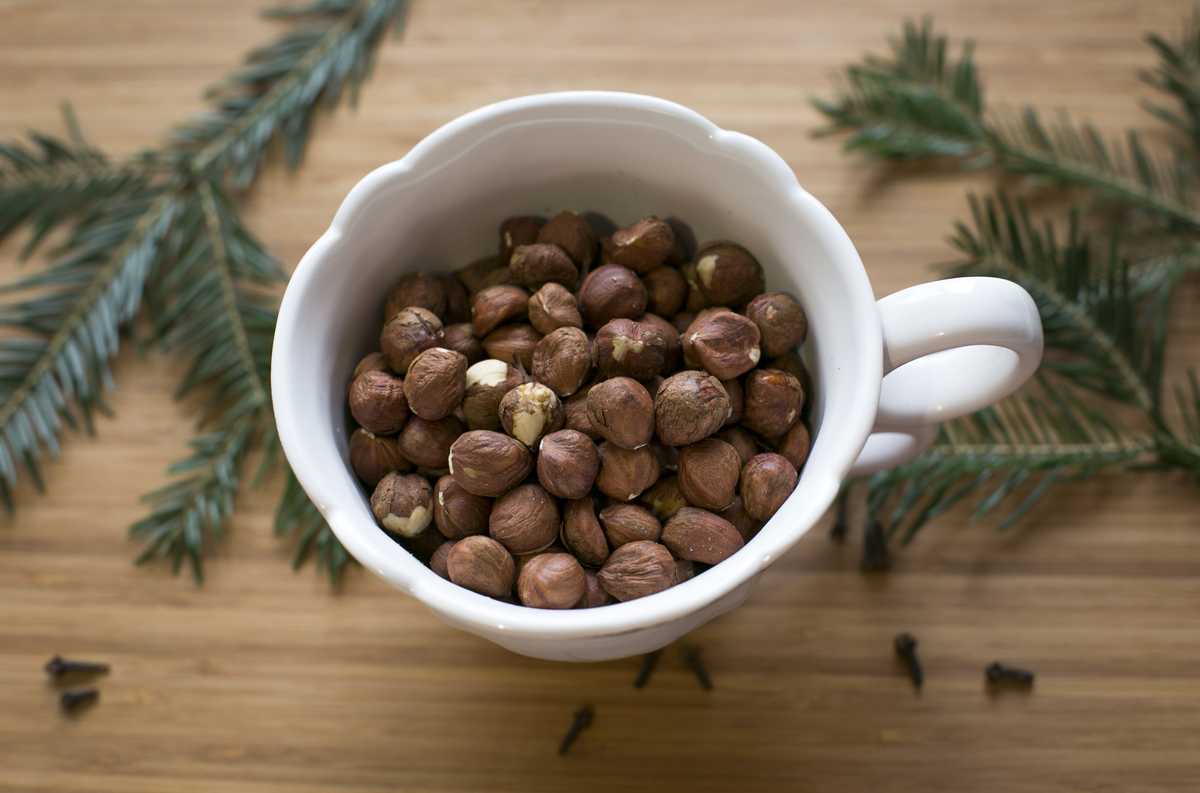 Для начала я хорошенько промыла в кипятке сушеный фундук. Сделала это за два дня до приготовления гранолы. Чтобы орехи хорошо просохли.
