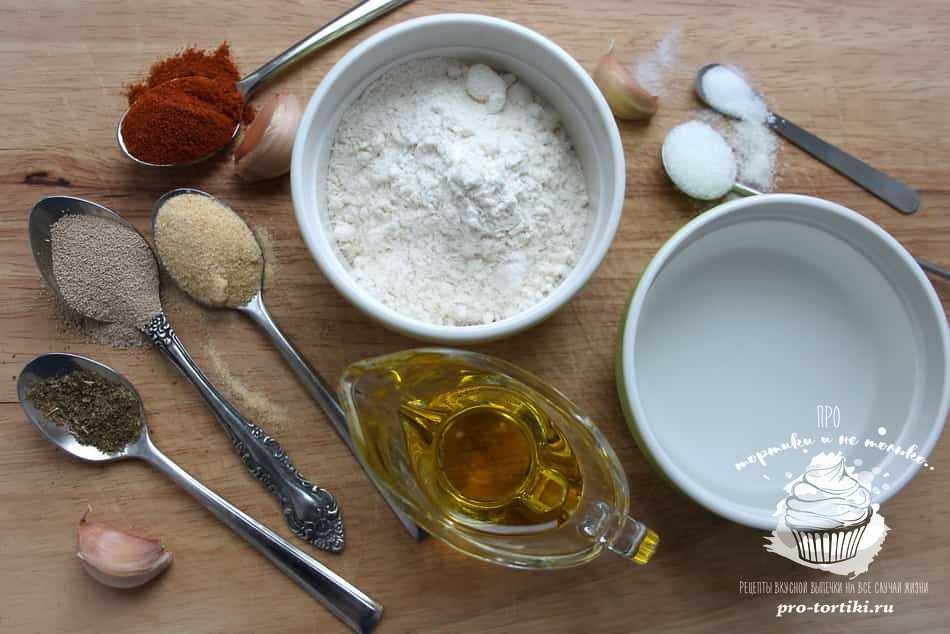 4. Затем засыпаем добавки: пряные сушеные прованские травы, паприку, чесночную соль. В составе трав классический набор – тимьян, базилик, майоран, чабер, шалфей, розмарин, орегано.