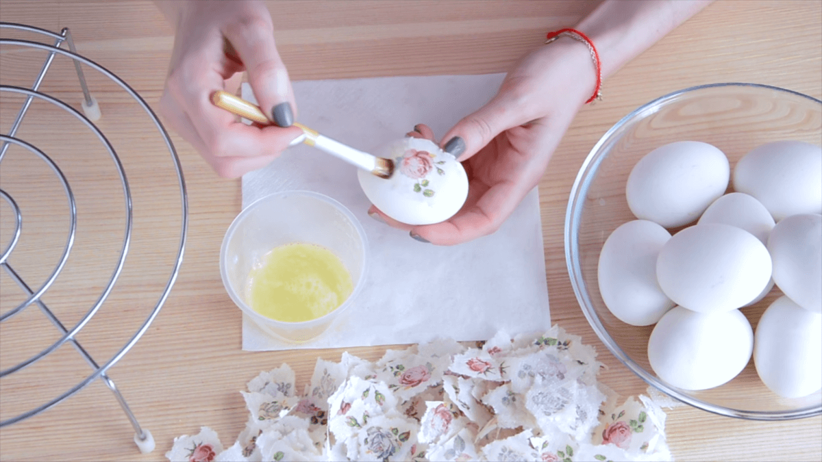 Оформляем отварные пасхальные яйца в технике декупаж салфетками и яичным белком