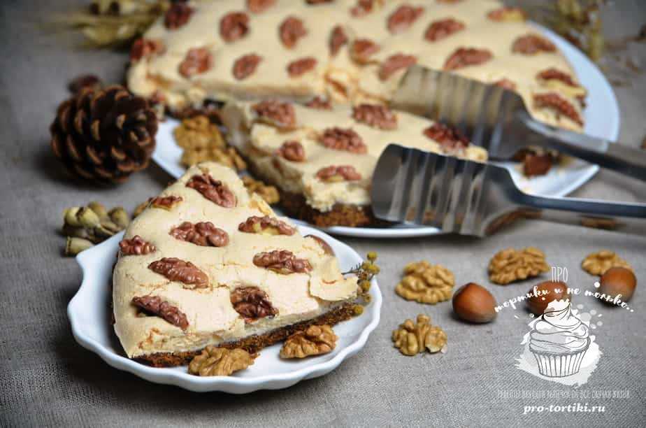 - Полить торт глазурью, украсить половинками или дроблеными орехами.