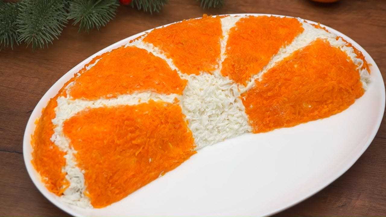 Необычный салат на праздничный стол — Апельсиновая долька отлично подойдет для празднования зимних праздников — Нового Года и Рождества!