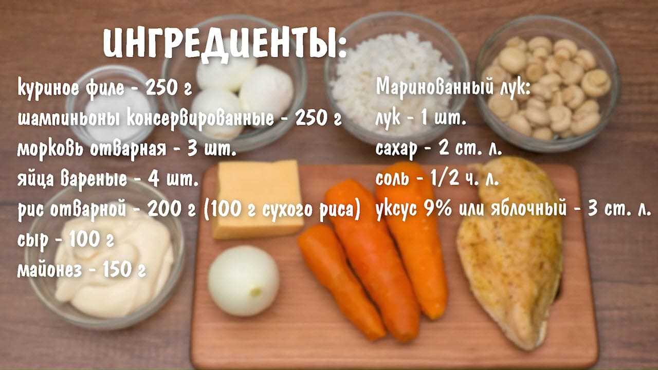 Прекрасный слоёный салат, требующий длительного пропитывания, носит очень грозное название – Генерал. Он имеет соответствующий солидный внешний вид и замечательный вкус. Продукты же для этого салата нужны самые обычные: