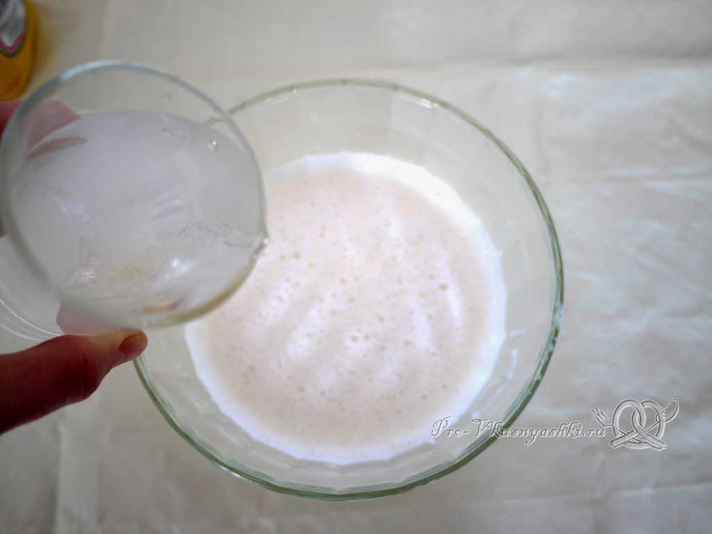 1. Дрожжи развести в небольшом количестве теплого молока, добавить соль и сахар. Когда будете смешивать дрожжи, то прочитайте на пакетике на какое количество муки они рассчитаны. Разные сорта идут на разное количество.