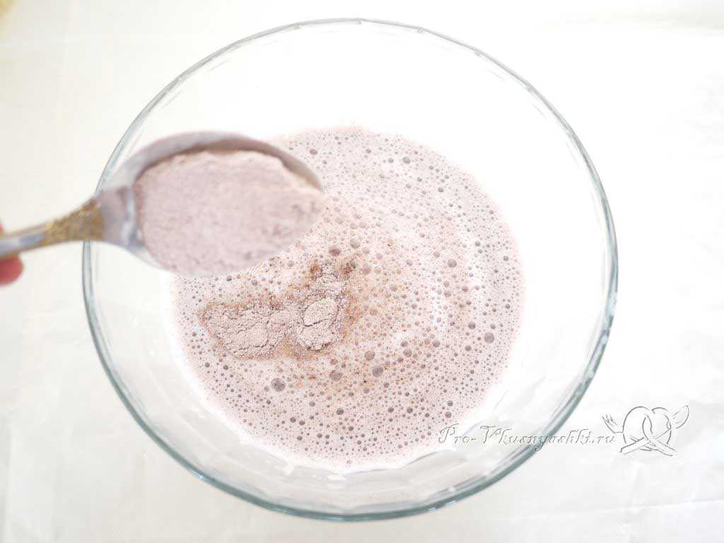 Просеять муку с парой ложек какао. Поставить чайник, к моменту замеса теста вода должна закипеть. Приготовить холодную воду и миксер, которым очень удобно производить замес. Либо берем обычный венчик.
