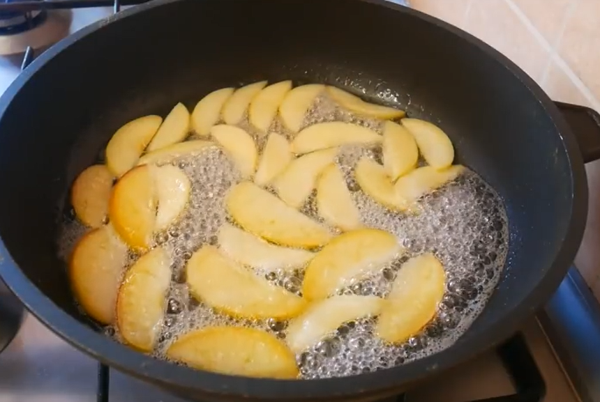 Важно воткнуть ее в тесто, а не в яблочные дольки. Если она останется сухой, значит наше тесто готово
