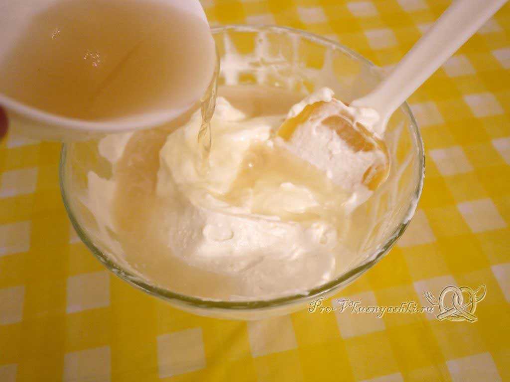 Отливаем в стакан немного ананасового сиропа (примерно 50-75 мл.) и ждем, когда сироп остынет, примерно до t 50 град., и добавляем желатин.