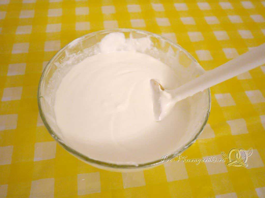 Достаем из морозилки сливки и взбиваем их до состояния густой устойчивой пены.