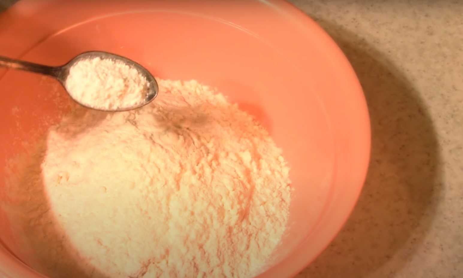 5. Муку и разрыхлитель просеять через сито, вмешать соль.