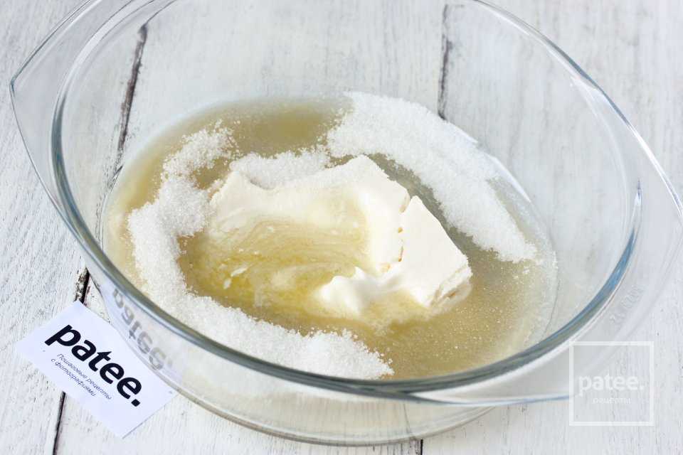 Соединяем мягкое сливочное масло с сахаром. Масло можно заранее достать из холодильника (часа за два) или немного прогреть в микроволновой печи.