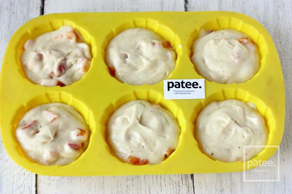 Фарш выложить в смазанные маслом формочки для кексов и поставить в разогретую до 200°C духовку. Выпекать 35 – 45 минут.