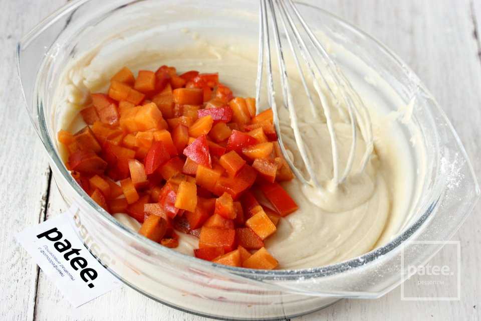 - Взбейте белки, закинув щепотку соли до пиков, введите в тесто и вновь вымешивайте до однородности.