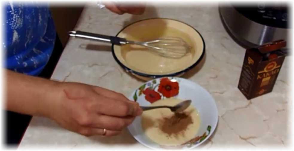 Делим тесто на две части, в одну вмешиваем порошок какао.