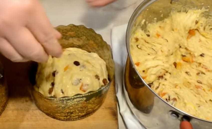 - Когда тесто выстоялось, заполняем форму на две трети и даем постоять еще 15-20 минут.